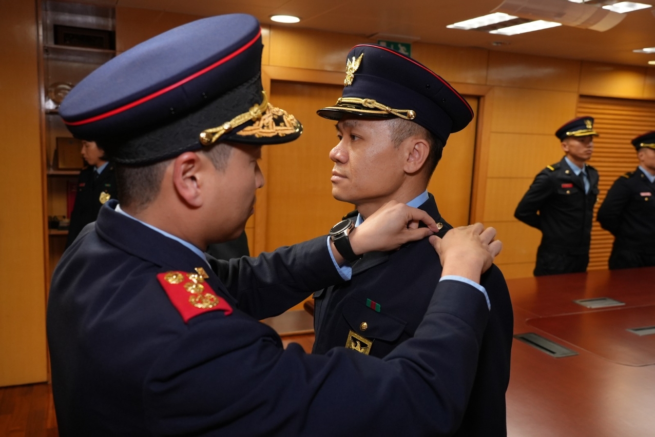 於2024年12月11日,在消防局總部暨西灣湖行動站舉行副消防區長晉升儀式,儀式由消防局局長 梁毓森 消防總監主持,副局長 林俊生 副消防總監、副局長 張智宏 副消防總監以及各部門主管級官員出席。晉升儀式中,各領導分別為獲晉升的人員戴上新肩章,並祝賀和勉勵他們在職業生涯的新階段有更好的表現、克盡己任,繼續為市民提供優質的服務。