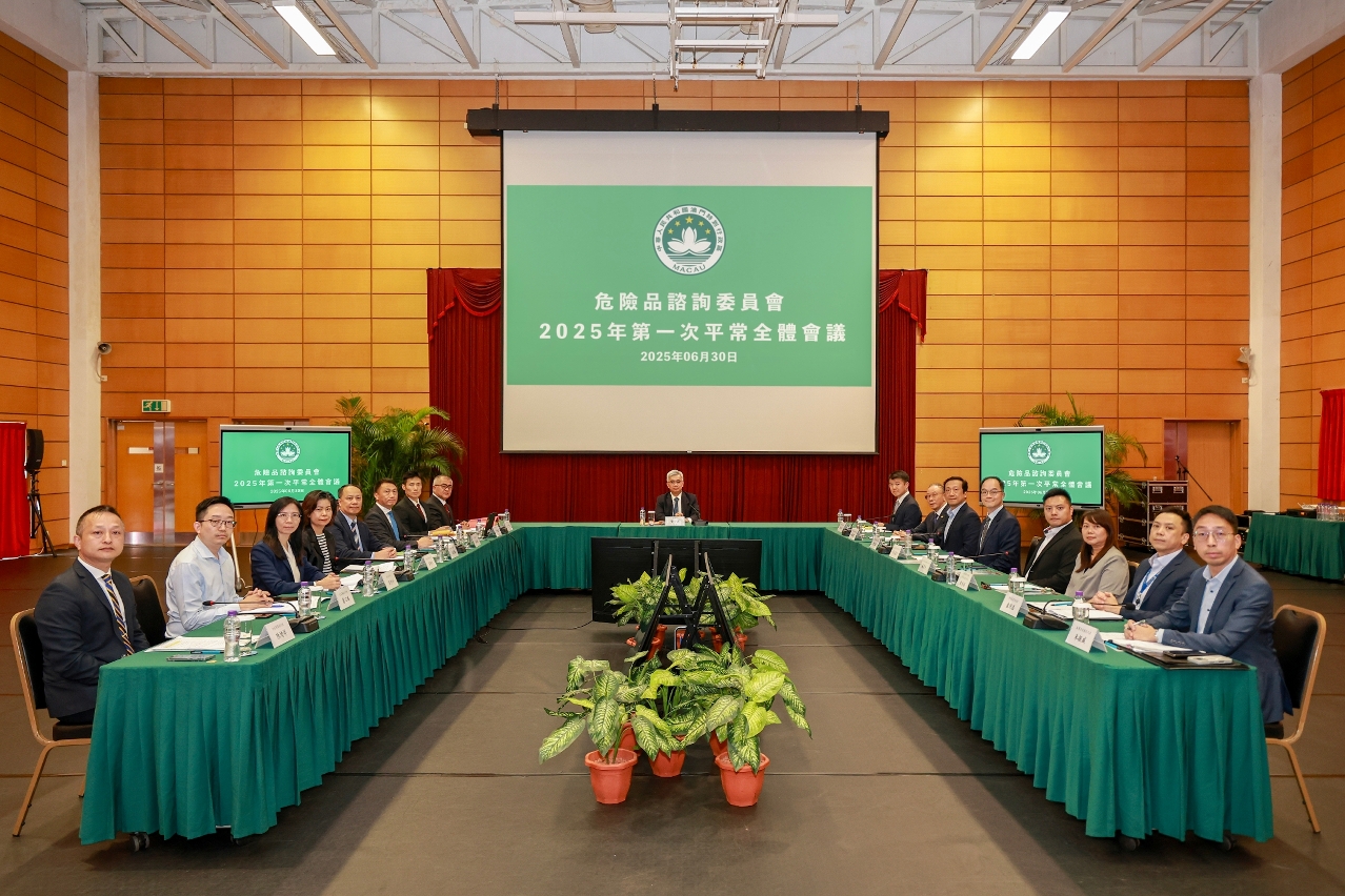 A Comissão Consultiva para as Substâncias Perigosas (doravante designada por Comissão) realizou a Primeira Reunião Plenária Ordinária de 2025 na tarde do dia 30 de Junho de 2025, no Comando e Posto Operacional do Lago Sai Van do Corpo de Bombeiros (CB). A reunião foi presidida pelo Presidente da Comissão, e também Secretário para a Segurança, Wong Sio Chak, que procedeu à abordagem profunda acerca de vários temas.