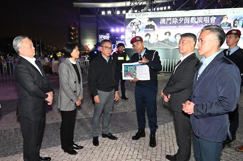 在除夕夜來臨之際,本澳多處會舉辦跨年倒數活動,為確保節日期間各類大型活動安全有序、澳門社會大局祥和穩定,保安司司長陳子勁今(31)親自前往多個大型慶祝活動場地及邊檢口岸,對各項保障跨年活動安全穩定的措施作最後檢視,並對前線執勤人員致以關懷慰問。