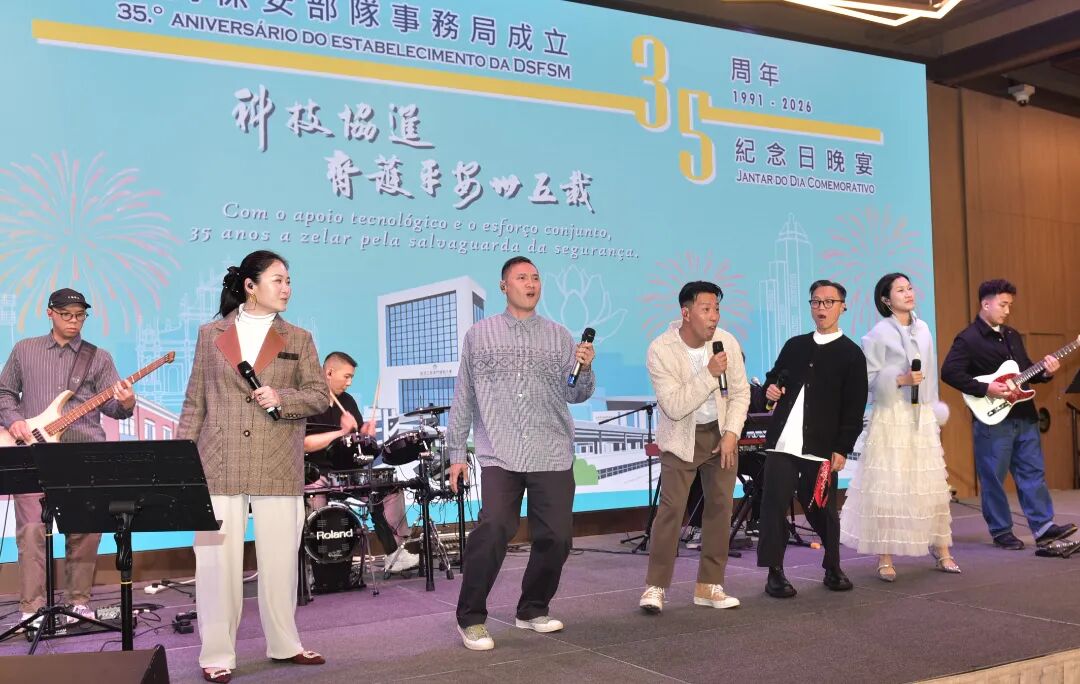 Para celebrar o 35.º aniversário do estabelecimento da Direcção dos Serviços das Forças de Segurança de Macau (DSFSM), esta Direcção de Serviços realizou no dia 4 de Fevereiro um jantar comemorativo no Salão de Banquetes do 4.º andar da Torre de Macau, sob o tema “Com o apoio tecnológico e o esforço conjunto, zelamos pela salvaguarda da segurança”, no qual foi feita uma retrospectiva sobre a evolução histórica da DSFSM e foram compartilhados os resultados do trabalho em vários domínios, sobretudo no âmbito da investigação e desenvolvimento das tecnologias informáticas, tecnologias integradas, garantia do funcionamento dos postos fronteiriços e gestão administrativa, bem como foi apresentada uma perspectiva do trabalho no futuro.