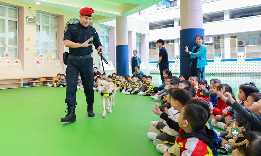 治安警察局升旗隊及警察樂隊到澳門浸信中學幼稚園進行升旗儀式演示