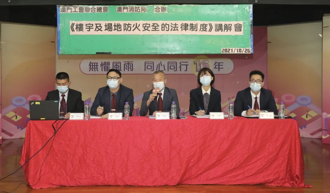 於10月26日下午,消防局為澳門工會聯合總會舉辦《樓宇及場地防火安全的法律制度》講解會。會上,首先由澳門工會聯合總會代表為講解會作引介,接著消防局代表詳細介紹了《樓宇及場地防火安全的法律制度》的內容,並主要就以明確劃分執法權限、明確維持安全條件的責任人、維持防火安全條件的義務、強化防範施及合法性監督措施、以及明晰處罰制度等內容作深入講解。與會者均認同新法律能提升執法效率,進一步加強樓宇及場地的防火安全。