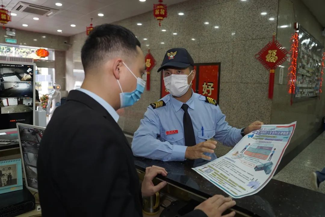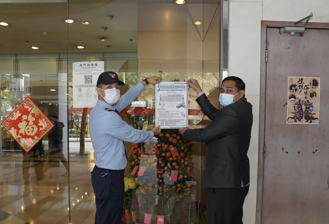 消防局持續到本澳各區進行《樓宇及場地防火安全的法律制度》推廣工作,於1月26及27日分別派出人員前往紅窗門及新口岸一帶,走進區內屋苑及商業場所進行宣傳,並張貼宣傳海報。