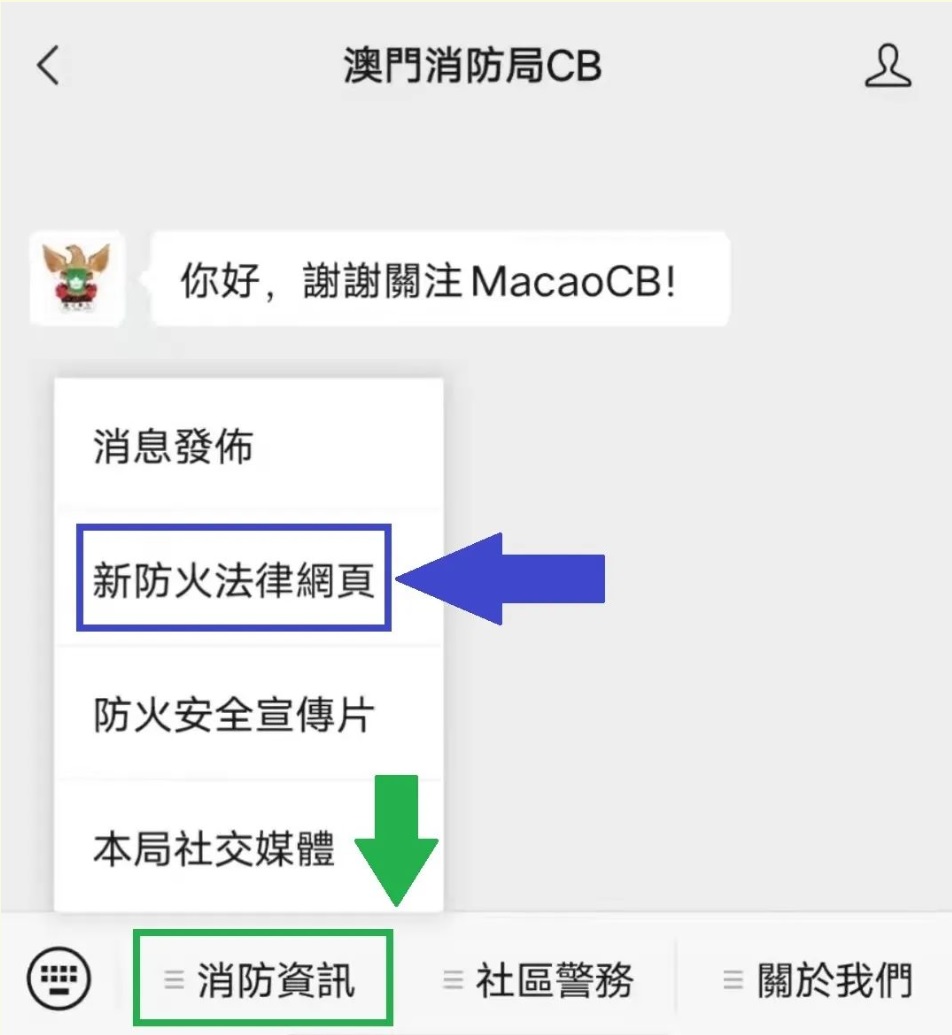 亦可於“澳門消防局CB”微信號內點擊“消防資訊”欄目