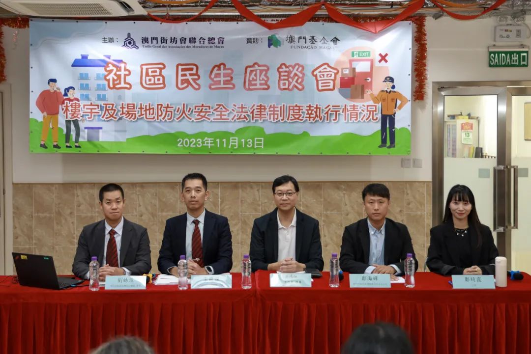 於11月13日下午,消防局應邀出席由澳門街坊會聯合總會舉辦的社區民生座談會,就第15/2021號法律《樓宇及場地防火安全法律制度》的執行情況作詳細講解及回應,並與團體代表交流意見,藉以加深社會各界和居民對新法的認識及瞭解。