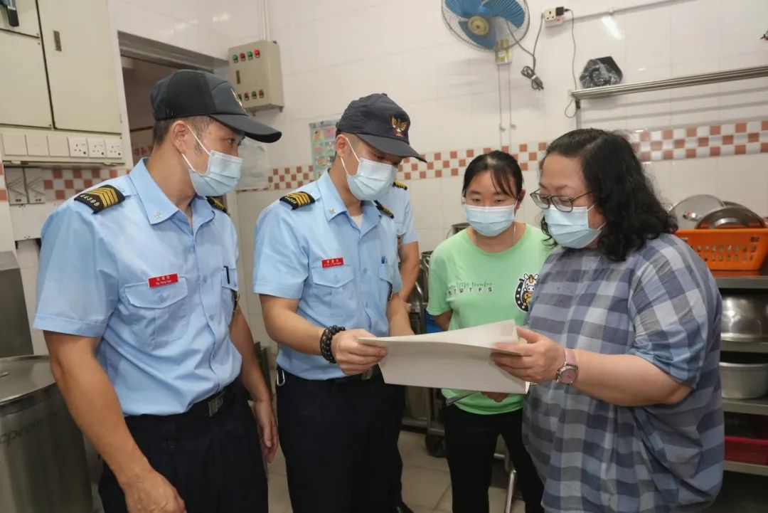 巡查期間,兩部門攜手合作;過程中,消防人員對校園食堂的燃氣設備、燃料儲存情況、化學室的各類化學品盤點及紀錄、疏散通道及消防設備等進行重點巡查,對於所發現到的不當或不足情況,消防人員已即時要求作出糾正及改善。