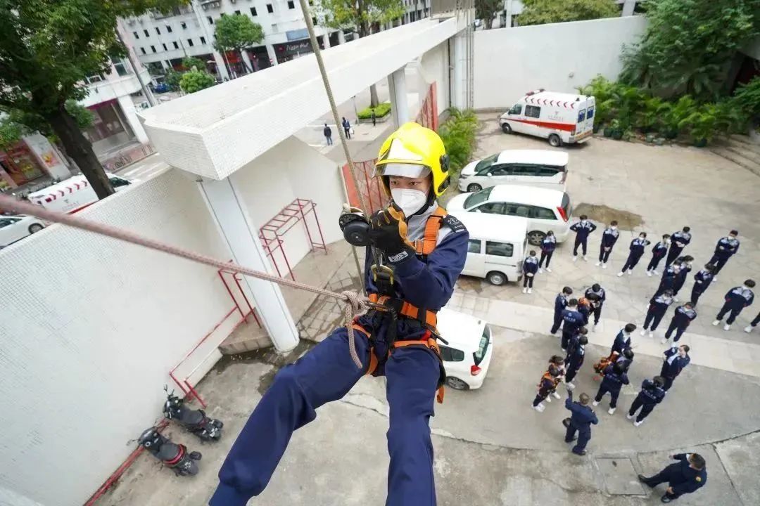 其後,各學員進行高空拯救體驗,利用繩結、滑輪組合及拯救座帶,嘗試將模擬被困者進行拯救,過程中,各學員積極參與,導師亦不時分享過往的工作經驗及案例,學員對此充滿好奇,表現得津津樂道。