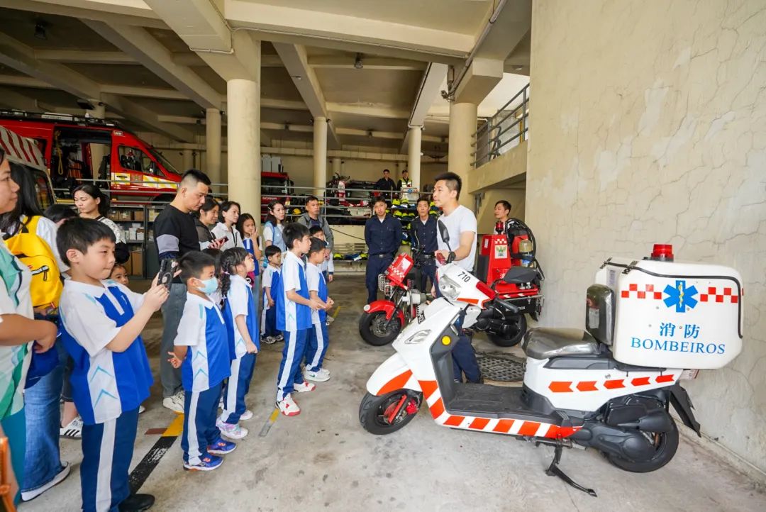 當日上午,海關小領袖成員及家長一行共24人首先前往消防博物館,參觀館內展示的昔日手搖水泵、歷代消防裝備及工具等,了解澳門消防局的發展歷程,並由消防局代表向小領袖們介紹防火及救護知識,帶出防火安全的重要理念。