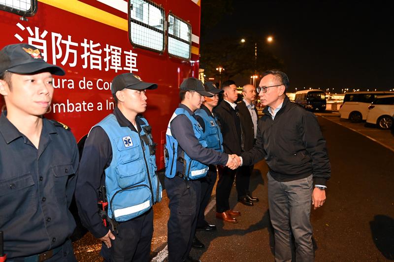 No período nocturno, o Secretário para a Segurança fez vistorias nos locais com grande concentração de pessoas, nomeadamente, a Praça do Lago Sai Van, inteirando-se dos planos policiais e de salvamento do Corpo de Polícia de Segurança Pública e do Corpo de Bombeiros, e instruindo-os para fazer bem as suas tarefas, nomeadamente, no âmbito da gestão no local, do controlo de multidões no fim dos eventos e das medidas de trânsito. Durante as vistorias, o Secretário para a Segurança apresentou cumprimentos aos agentes da linha da frente, agradecendo, sinceramente, a todo o pessoal das forças e serviços de segurança por ter assegurado com firmeza os seus postos e desempenhado fielmente as suas funções durante este período festivo, garantindo a realização sem sobressaltos destes eventos.