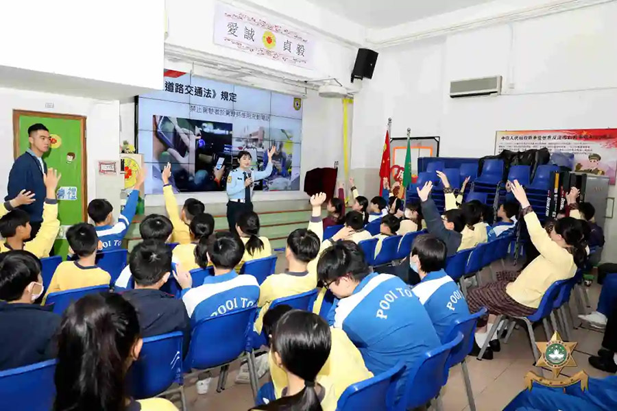 治安警察局到氹仔坊眾學校進行交通安全講座