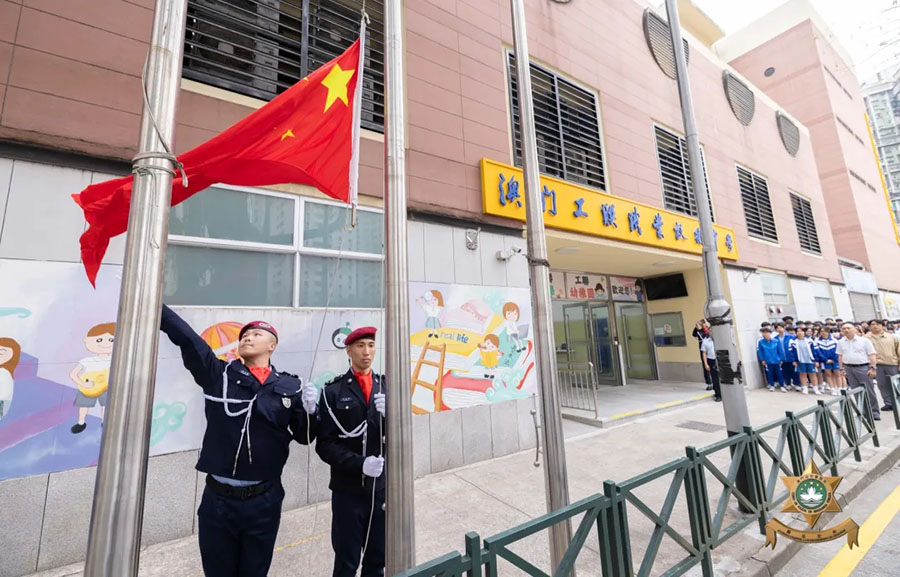 治安警察局到澳門工聯職業技術中學進行升旗演示