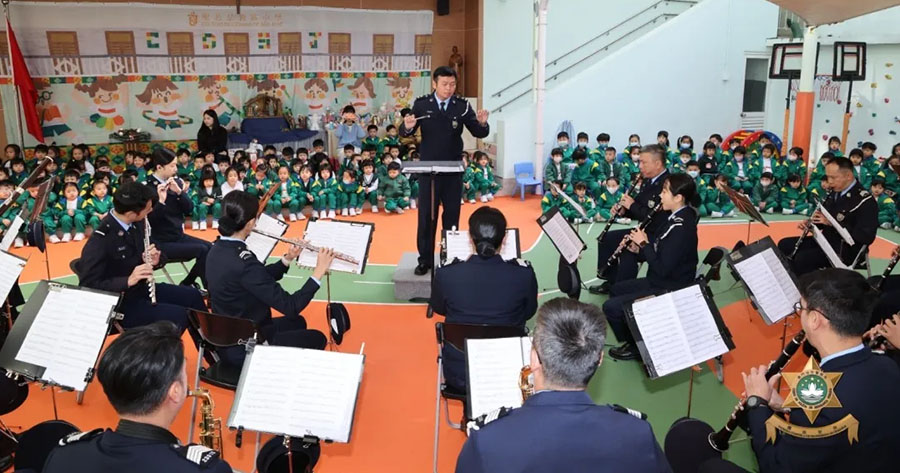 警察樂隊到聖若瑟教區中學(第二校)學校進行演奏交流