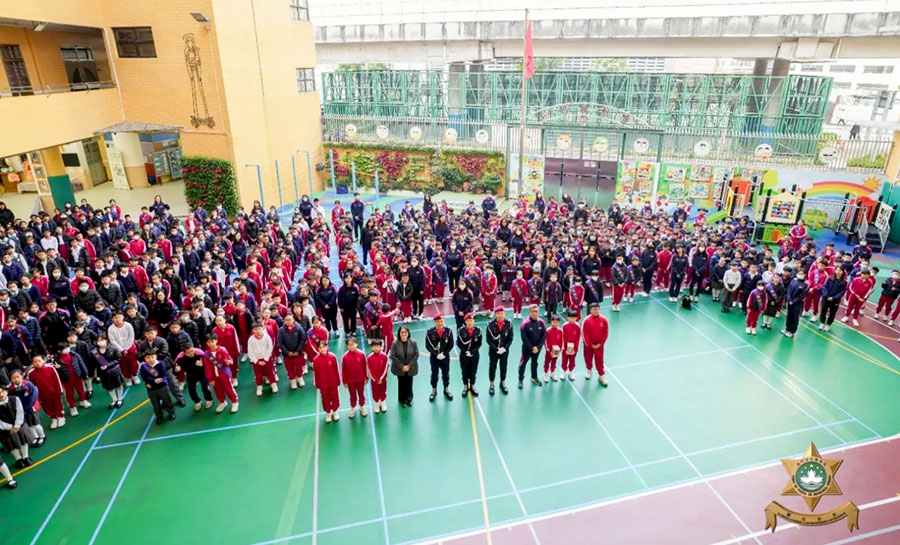 治安警察局升旗隊及警察樂隊到澳門浸信中學幼稚園進行升旗儀式演示