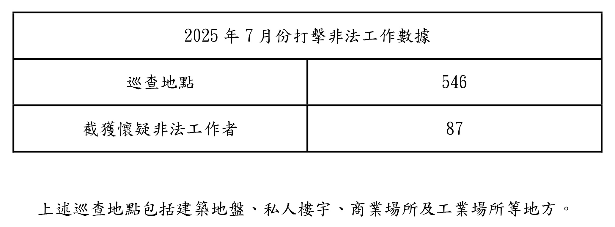 治安警察局 Corpo de Polícia de Segurança Pública 本局動態 > 最新消息 2025/8/18 新聞稿:打擊非法工作行動2025年7月份統計資料 2025年7月份,治安警察局、勞工事務局以及各聯合行動中,打擊非法工作的行動之統計資料如下: