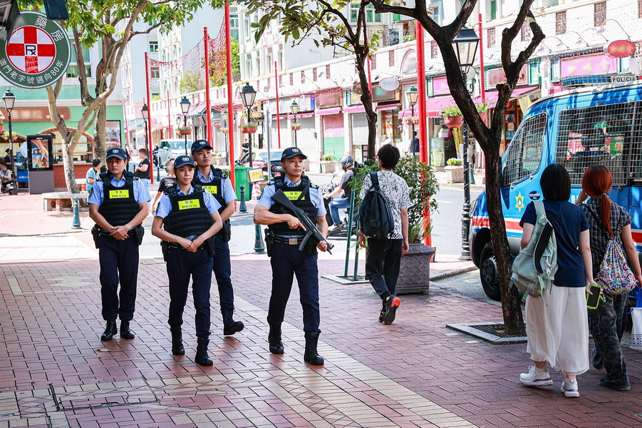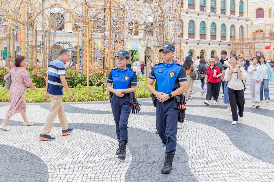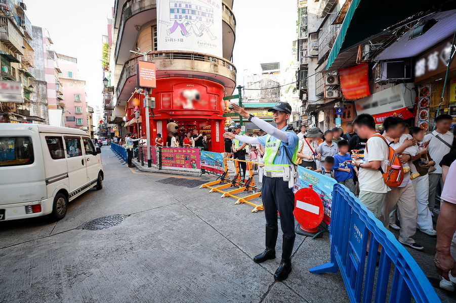 節假日期間,本澳新馬路、大三巴、氹仔舊城區及金光大道等主要旅遊熱點遊人如織。治安警察局根據現場人流變化動態調整警力部署,分別於10月2日、3日及4日下午在大三巴短暫實施人潮管制措施;而為配合氹仔舊城區及關前後街於節日期間設立臨時行人專用區,在10月1日至10月7日中午12時至晚上7時在上述兩個區域及周邊道路實施臨時交通管制措施;實施上述措施期間,市民及旅客均積極配合現場警方指示有序行進,整體秩序良好。
