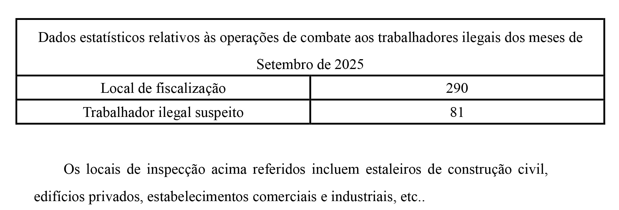 21/10/2025 Comunicado:Dados estatísticos relativos às operações de combate aos trabalhadores ilegais dos meses de Setembro de 2025